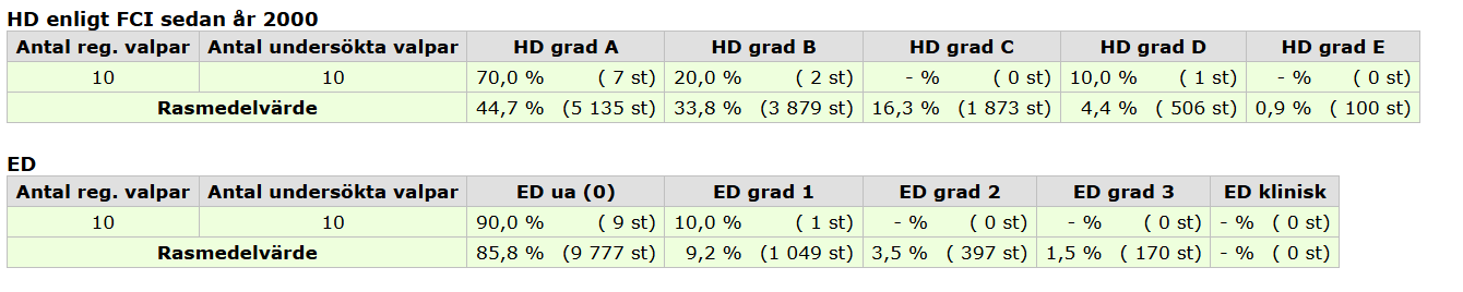 När vi utvärderar röntgenresultatet för HD och ED på denna kull kan vi stolt konstatera att Viska och Everest har lämnat fina resultat efter sig