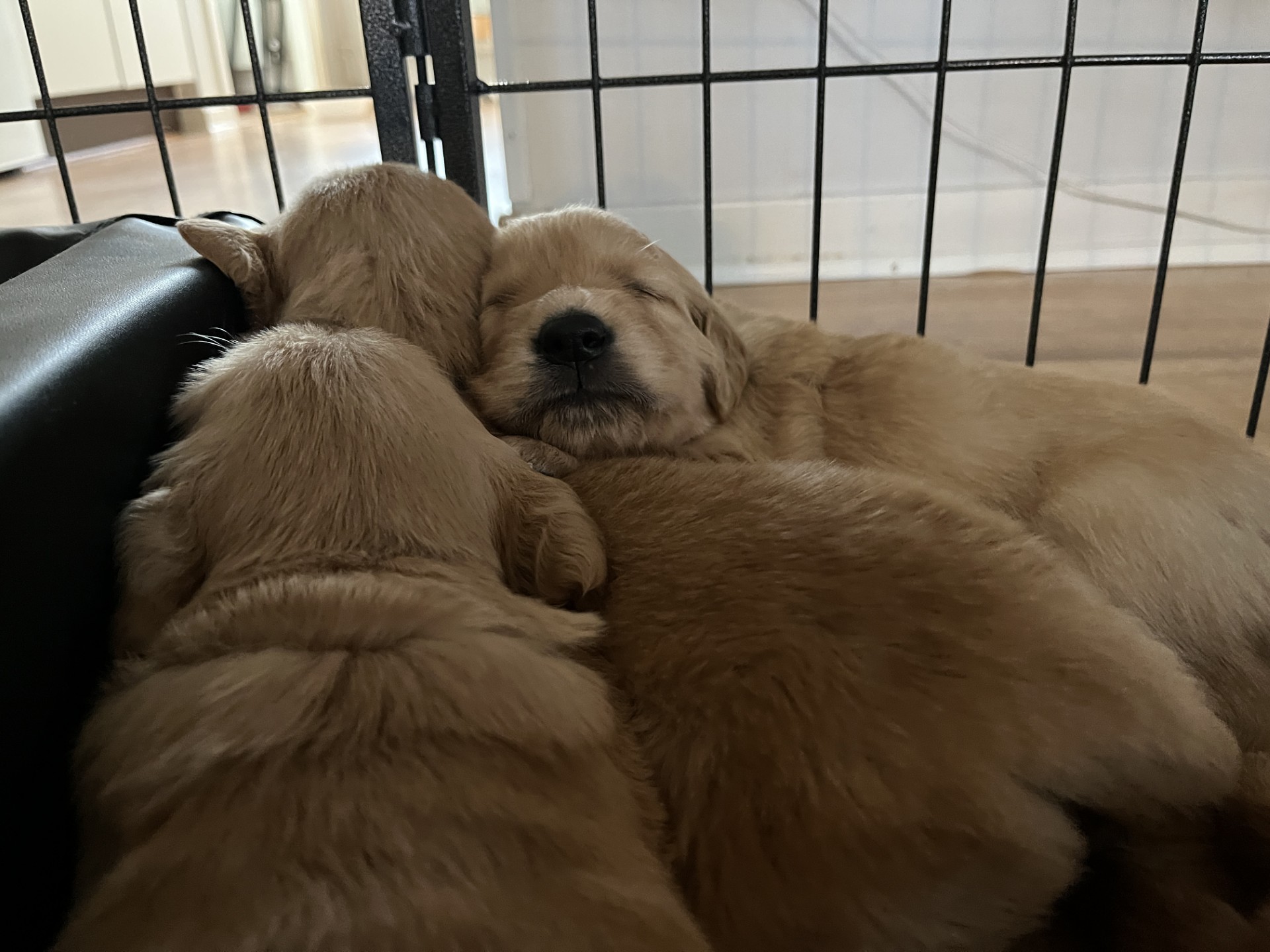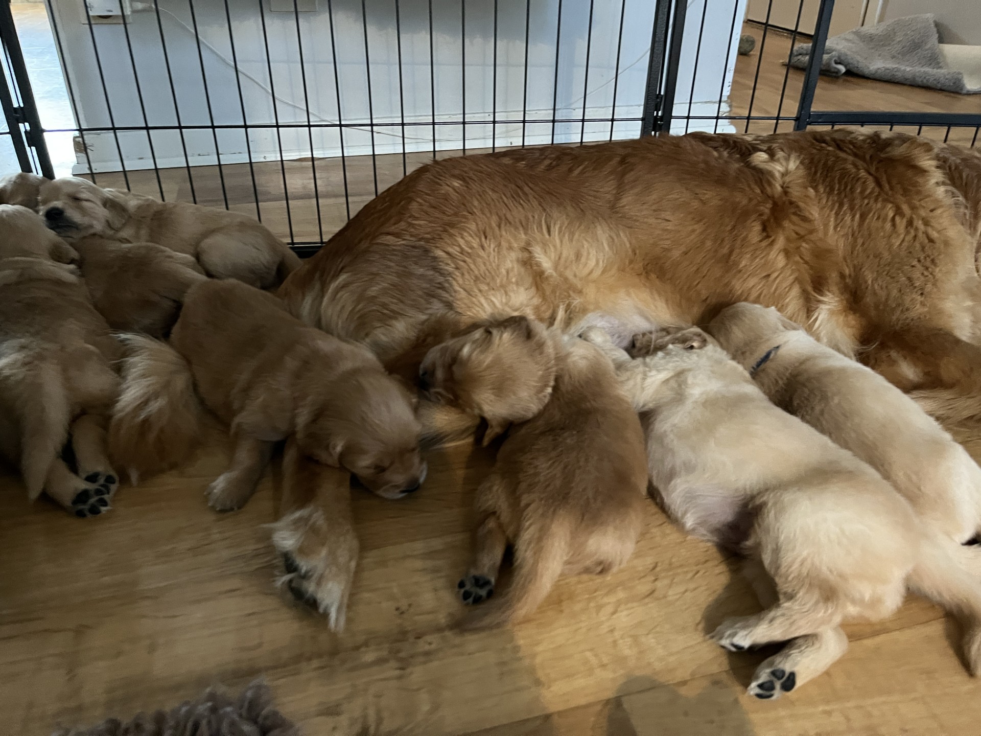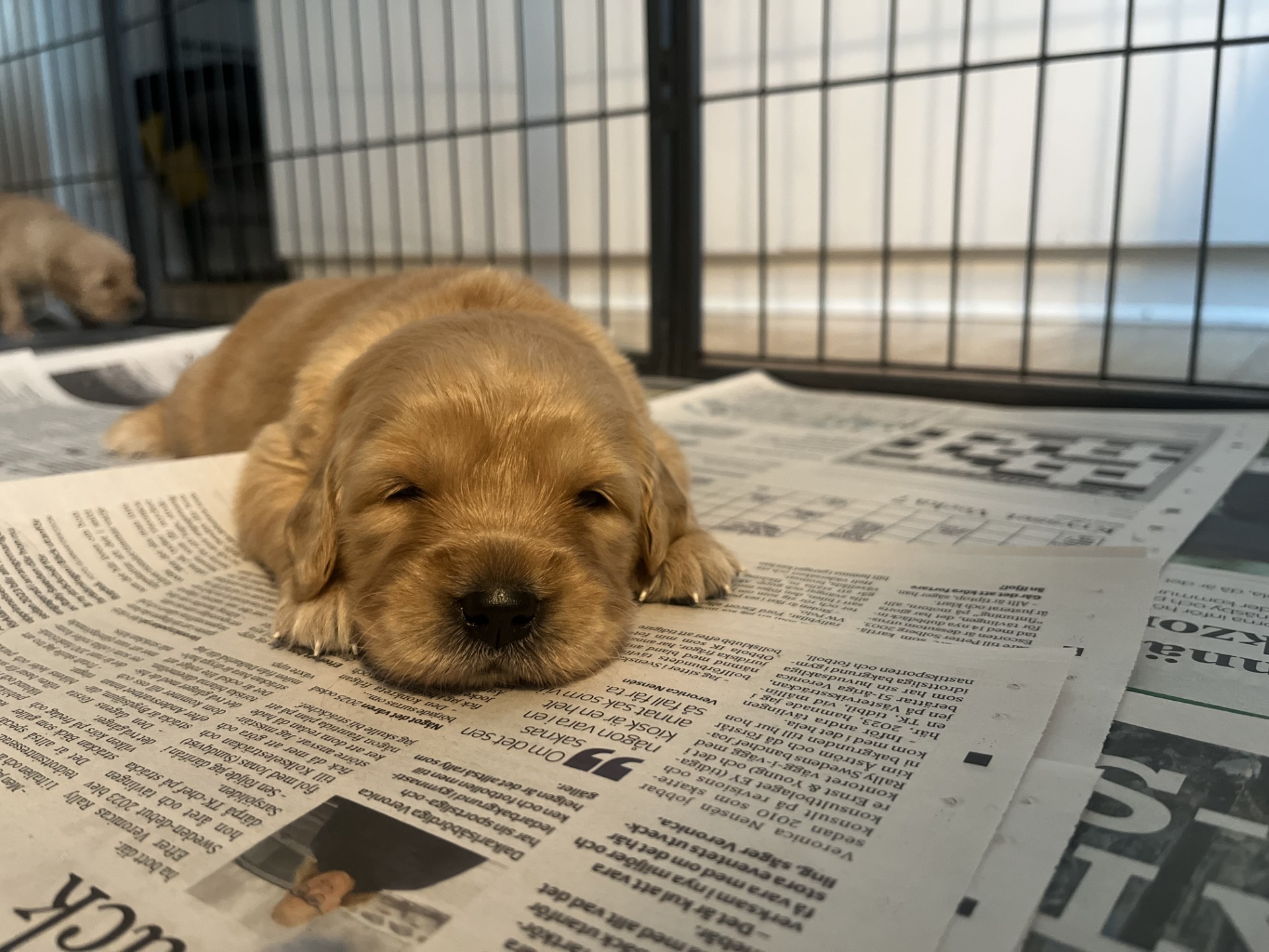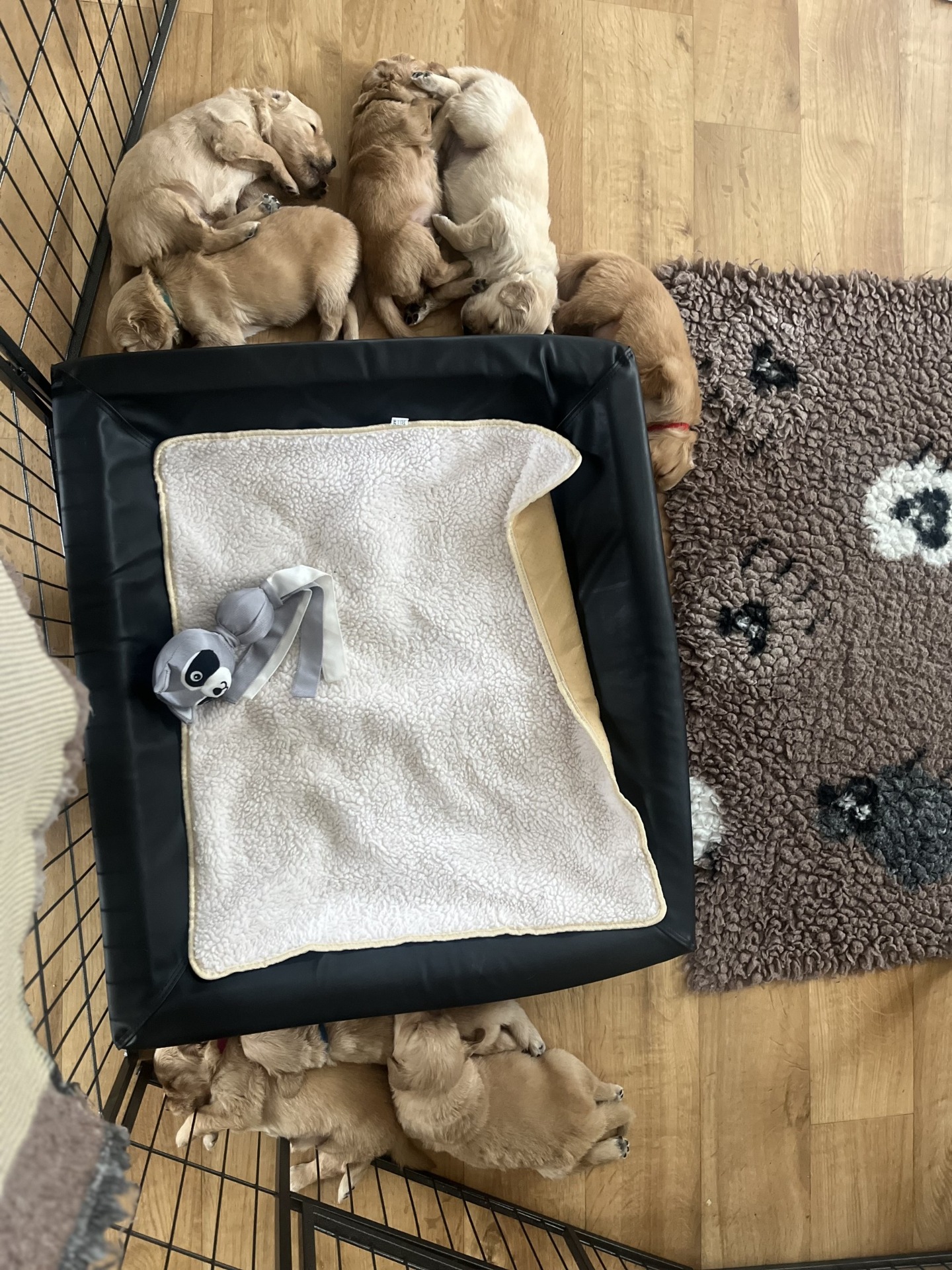 Det har varit glest mellan inläggen den senaste tiden, men det finns en väldigt mysig anledning till det: vi spenderar i princip all vår tid i valplådan. Valparna har vuxit så snabbt att de redan hunnit växa ur den – och nu har de flyttat ut i köket, där de får möta allt vad vardagliga ljud och rörelser innebär. Det är en perfekt start på livet och en bra förberedelse för deras framtida hem.
